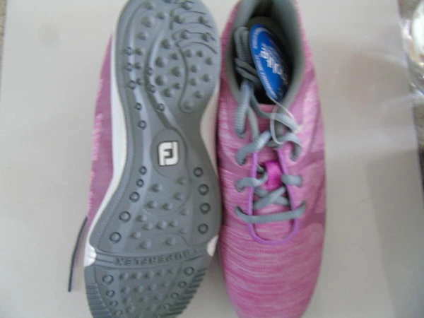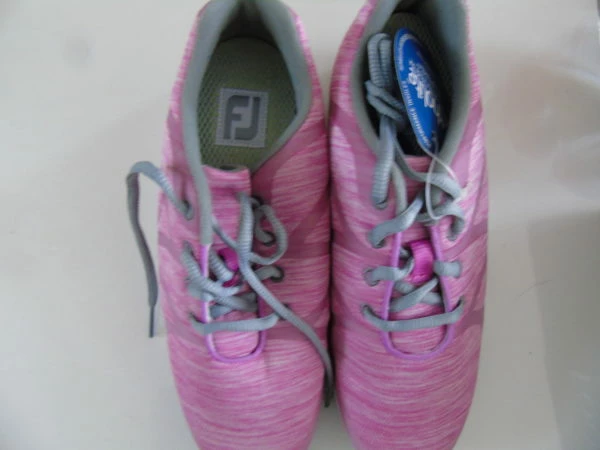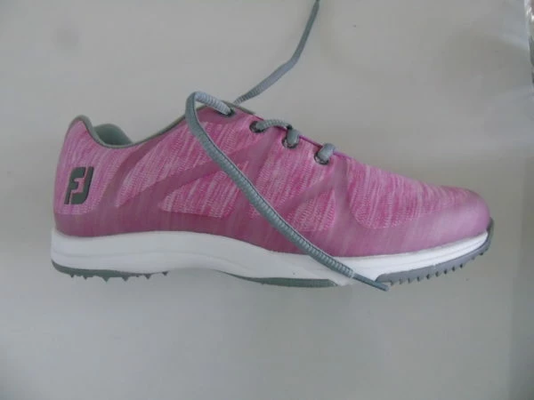 A Brand New pair of Ladies Footjoy top of the range Golf Shoes at a saving of around 70%. Pink super light shoes with moulded sole for comfort. These shoes are flat and could be worn as trainers. RRP is £84.99. Product Code 92906K