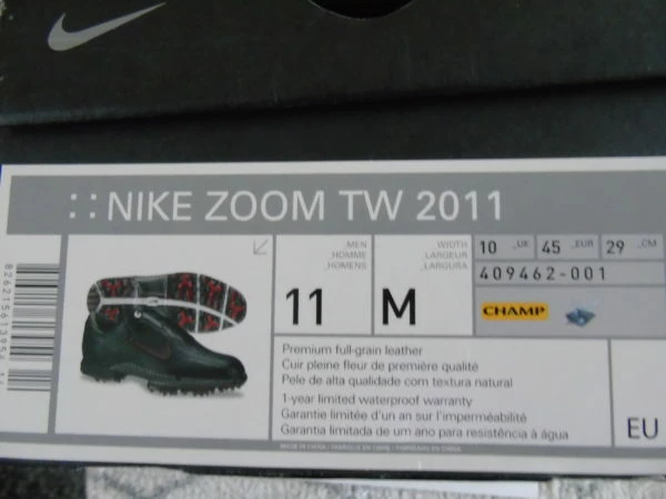 A Brand new in the box pair of Mens Golf shoes. These are accepted as the best, most sort after Golf shoes Nike ever made and as such are much sort after. They are brand new in the box. These shoes regularly sell for well over £200 on auction sites. Made from the finest full grain Leather. UK 10 M