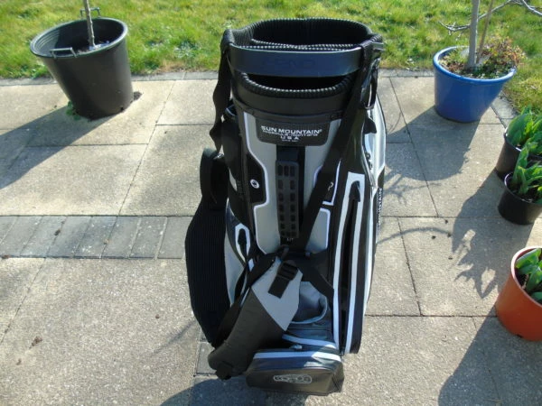 A Super light weight Sun Mountain H2NO carry bag with Double strap, rain cover and stand. Only used a couple of times and less than half price. It has a club logo on the ball pocket so priced a bit less than it should be. On ebay this would easily sell for over £150 as the RRP is £275.
